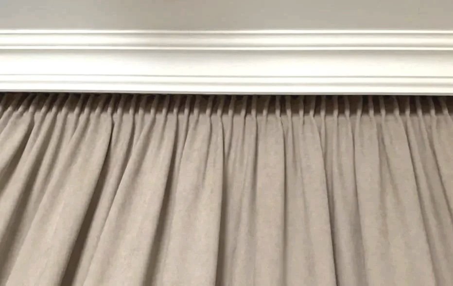 Перделъкът на снимката е с ширина 5.5 см, набор 1:2Същият перделък ще подхожда и в случай, че улеят за плътната завеса е разположен близо до декоративен профил, криещ корниза.