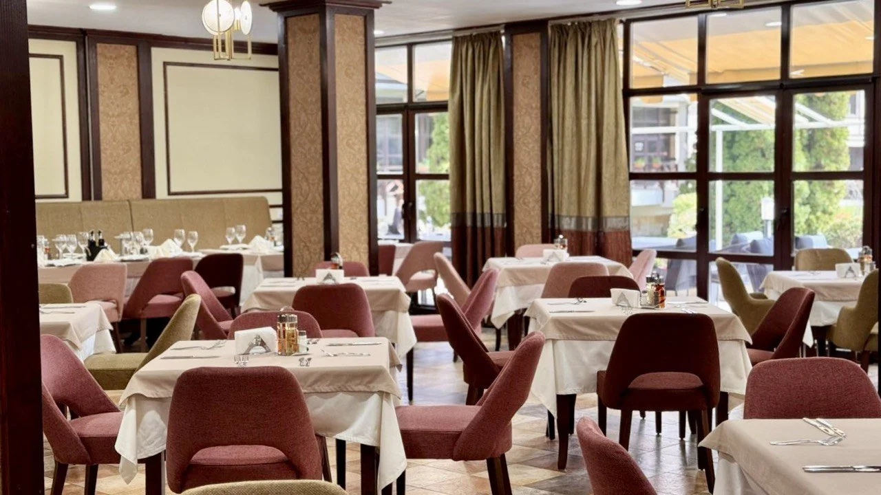 Текстилът е с характерна текстура и ефектен кант – в ресторанта той подчертава височината на прозорците, а в стаята е разположен вертикално, за да увеличи оптически тавана.