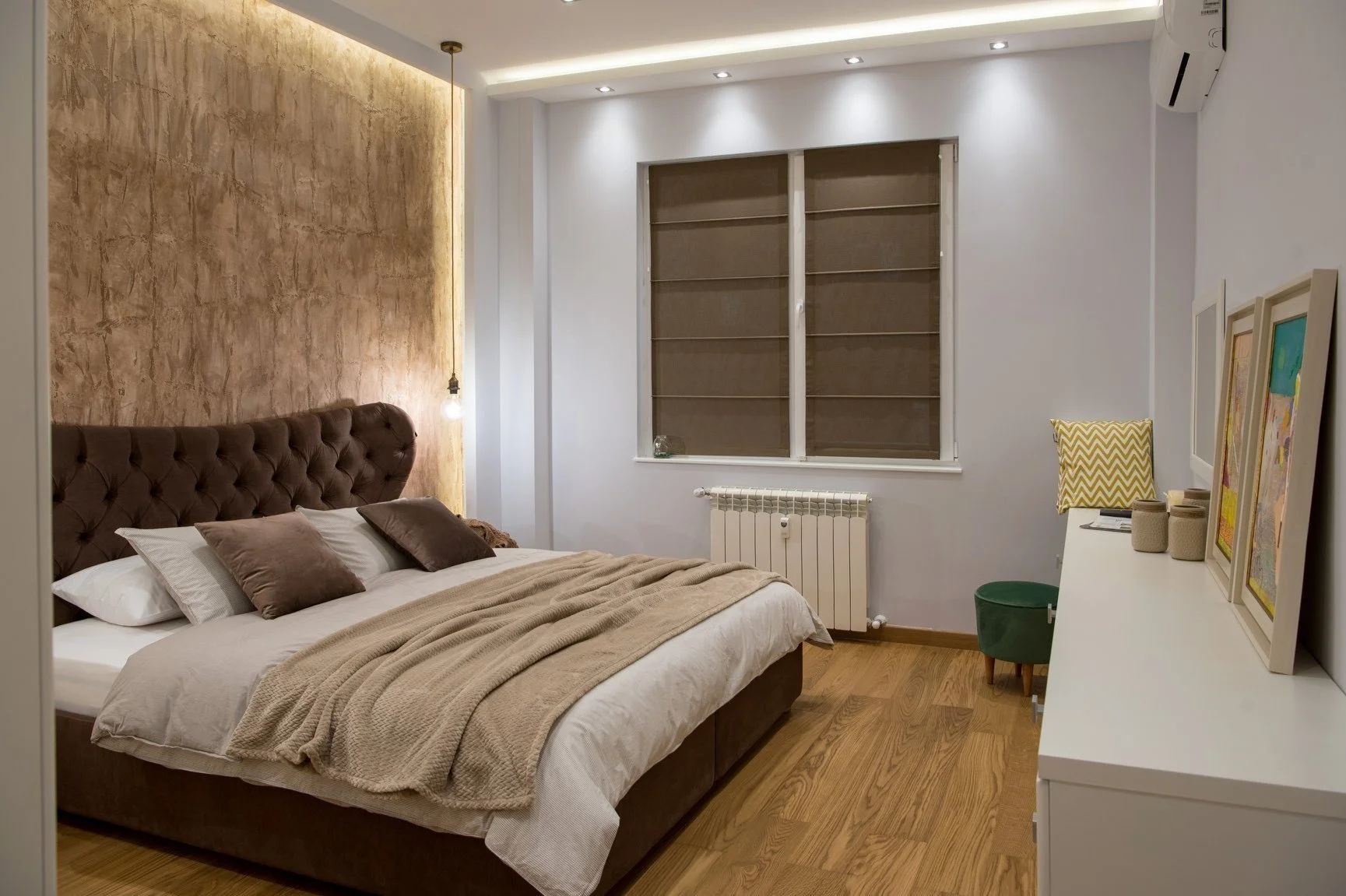 Заложихме на римски щори, монтирани директно върху дограмата – изчистено и деликатно решение, което остава ненатрапчиво, но придава завършеност. Текстилът носи мекота, приглушава светлината точно толкова, колкото е нужно, и внася онзи фин уют, който прави едно място истински дом.